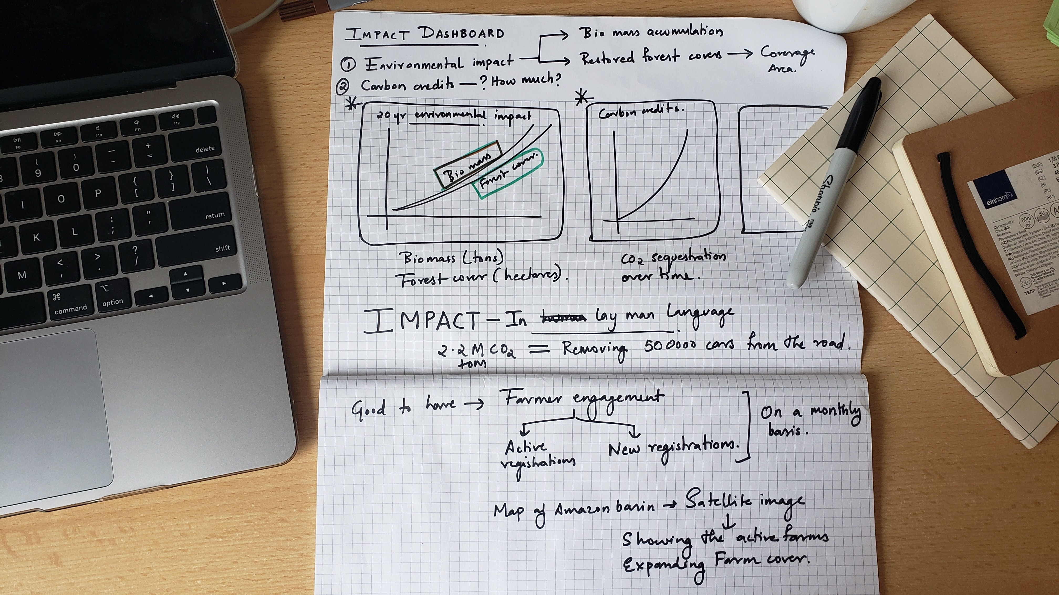 These insights gave me a clear direction on what information to present - striking the right balance between giving investors a clear overview while avoiding information overload. I further deepened my understanding by collaborating with Sylvi, a platform that provides insights on MRV, and researching what an effective MRV pipeline should include and understanding the finances along with identifying the key impact metrics and financial metrics that are essential for informed decision-making.