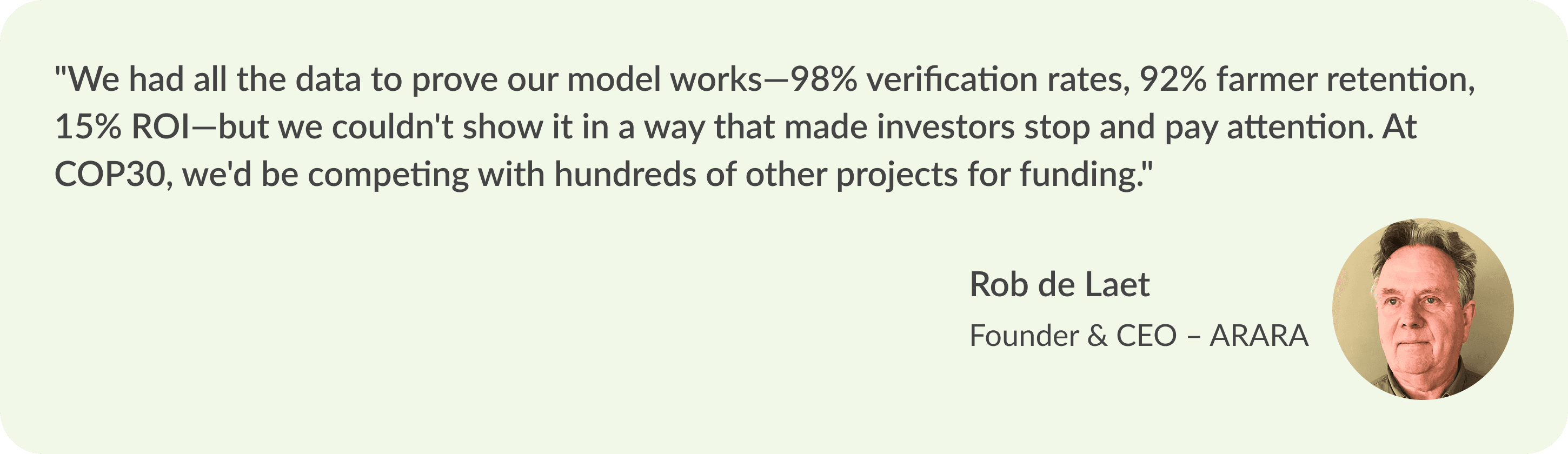 Challenge: ARARA's hybrid model (loan interest + carbon credits) was hard to explain.