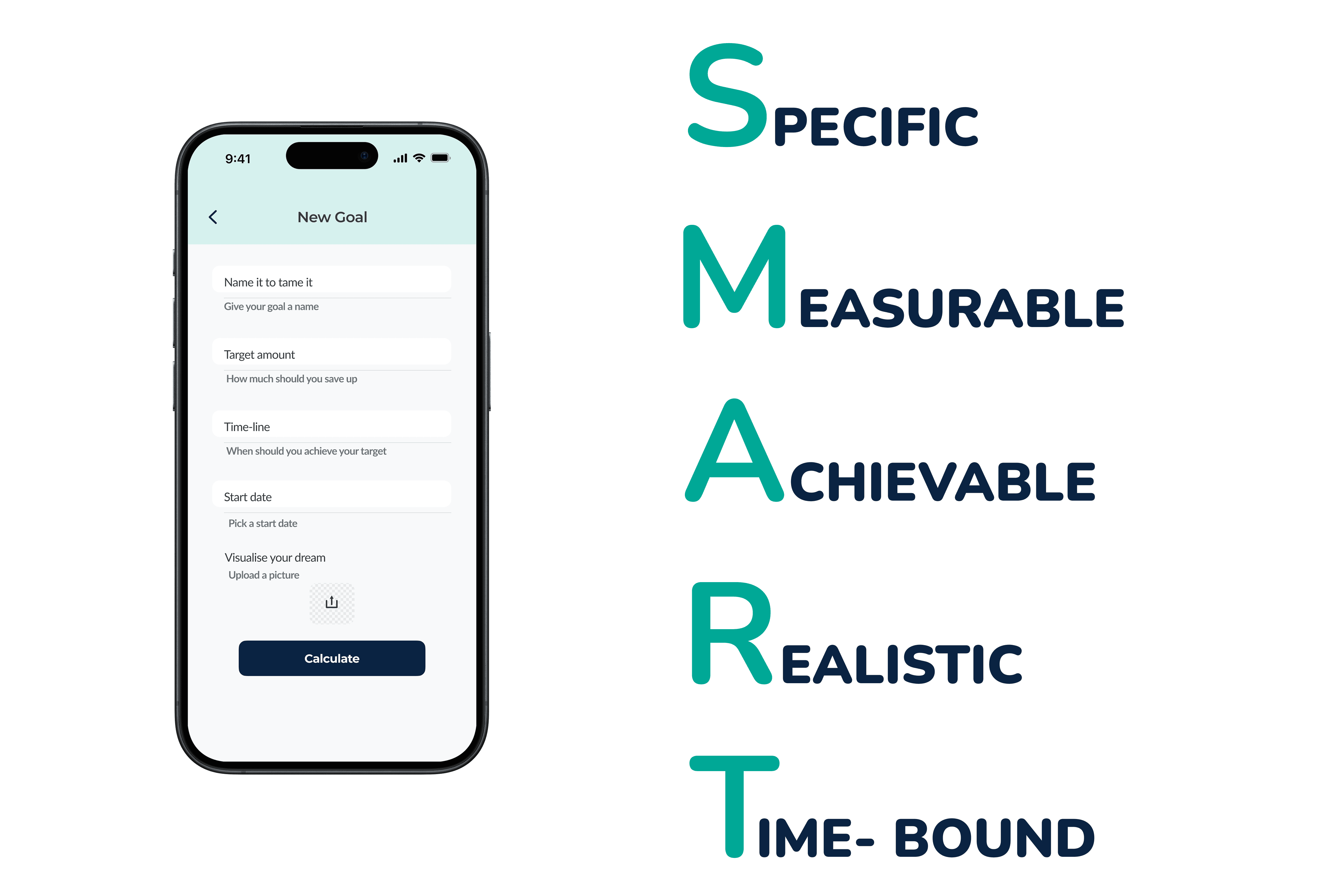 Many a times goals end up being vague. SaveUp provides a solution by using the SMART goal framework.